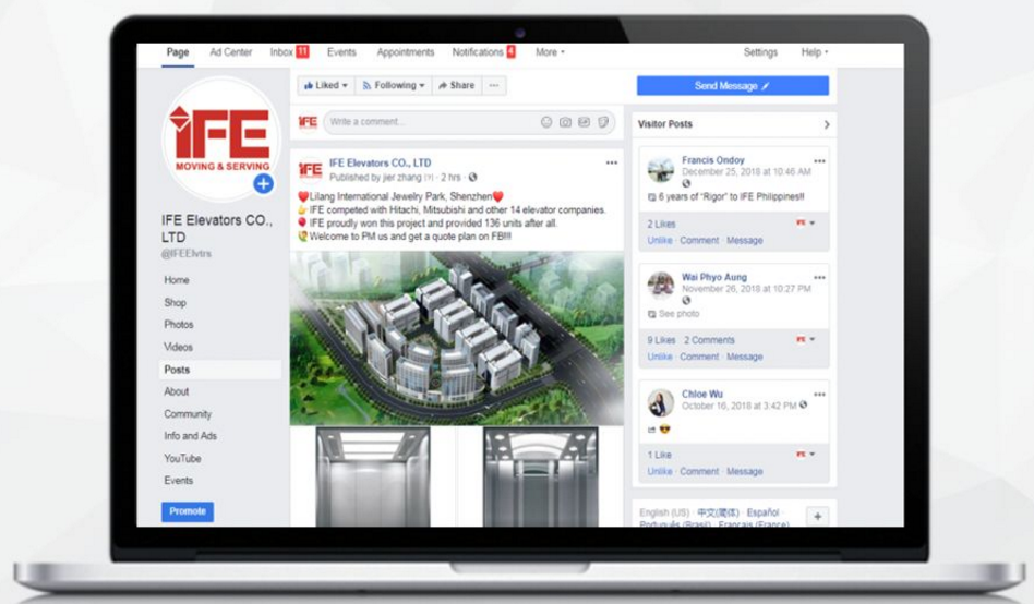 4.為快意電梯員工提供Facebook培訓,企業(yè)內(nèi)部員工學會操作,以確保對詢盤回復及時。